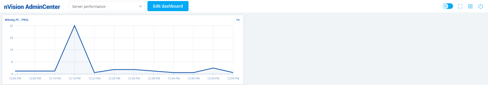 Performance counter for a selected device The widget makes it possible to view a graph showing the values of a specific performance counter for the selected device. The configuration requires the selection of the device, the performance counter, and time range for the data to be shown: