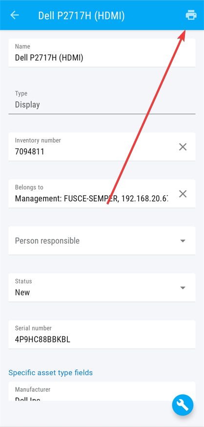 3. Print label - The nVision mobile application, apart from barcode scanning, also enables label printing. To print a label, the device on which the Inventory Assistant is installed should be connected to the printer. To display the label printing tab, click the icon displayed in the tab of a specific resource.