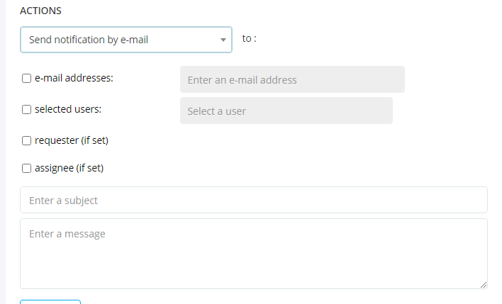 Sends an e-mail message defined by the administrator (subject + content) to selected users:
