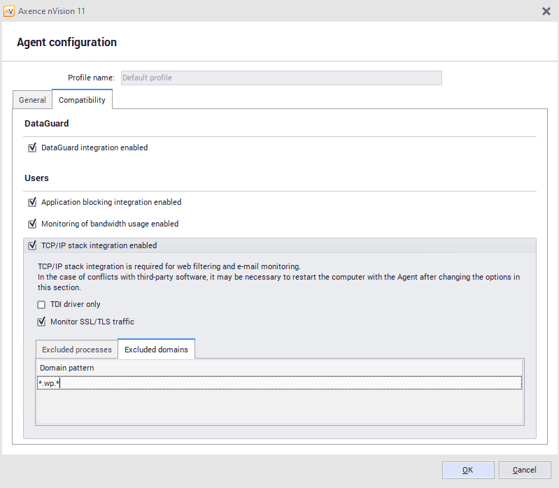 Excluding domains from blocking rules in the Agent profile To exclude domains for all the devices used, you must properly configure the Agent profile.