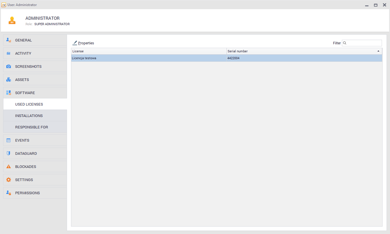 Licenses assigned to user To view the licenses assigned to user, go to the user information window and select the Software / Licenses Used tab: