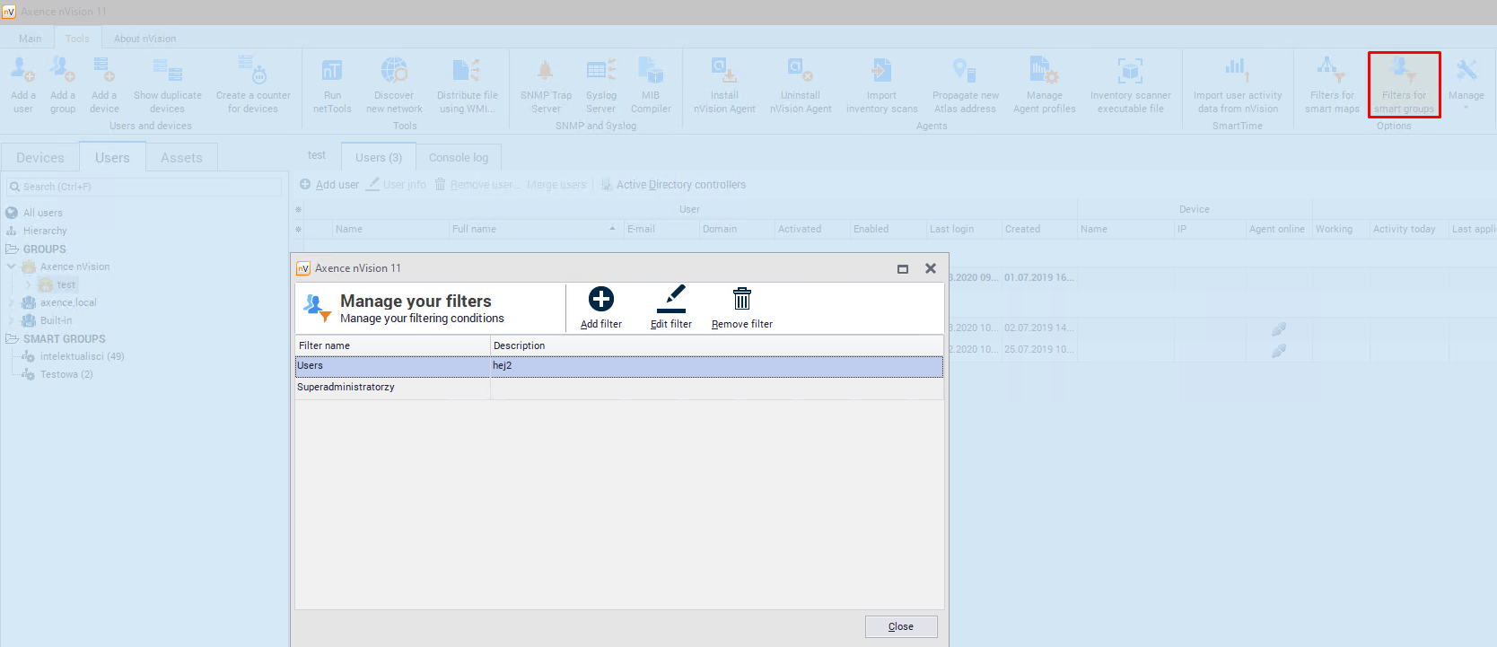 Creating a smart group filter The next step is to create a filter. To do this, select Filters for smart groups on Tools tab or click Add near filter field while creating Smart Group