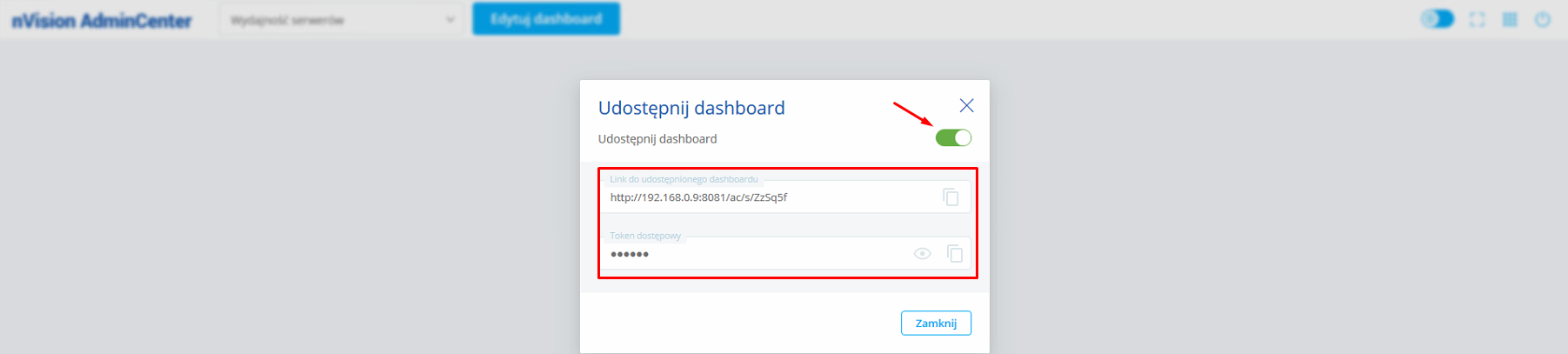 Udostępnianie dashboardu |