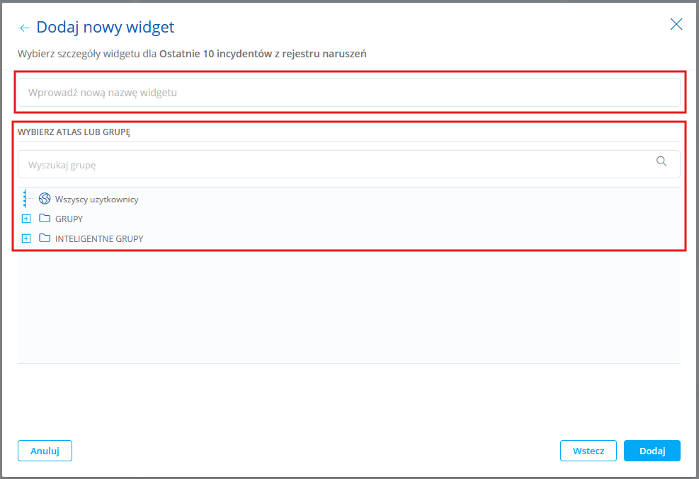 Ostatnie 10 incydentów z rejestru naruszeń Lista ostatnich dziesięciu incydentów z rejestru naruszeń. Możesz wybrać: •atlas, •grupę. Przykład: |
