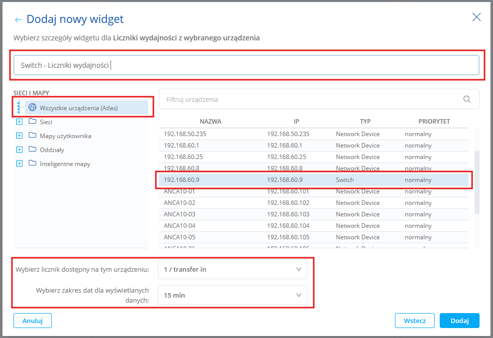 Uwaga! widget z licznikiem wydajności dodasz tylko dla urządzeń z dodanym licznikiem wydajności.