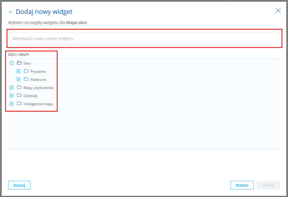 widgety modułu Network |
