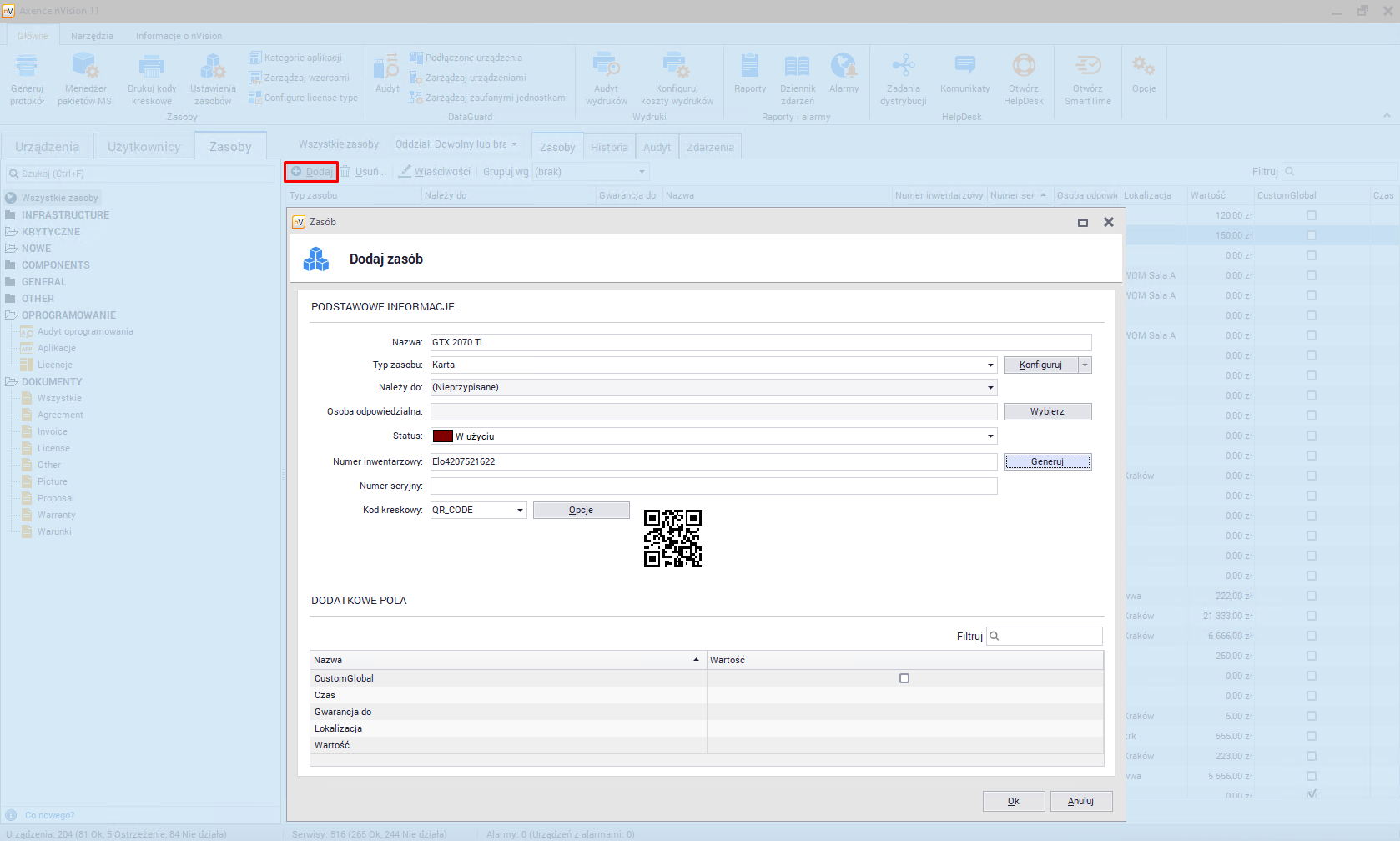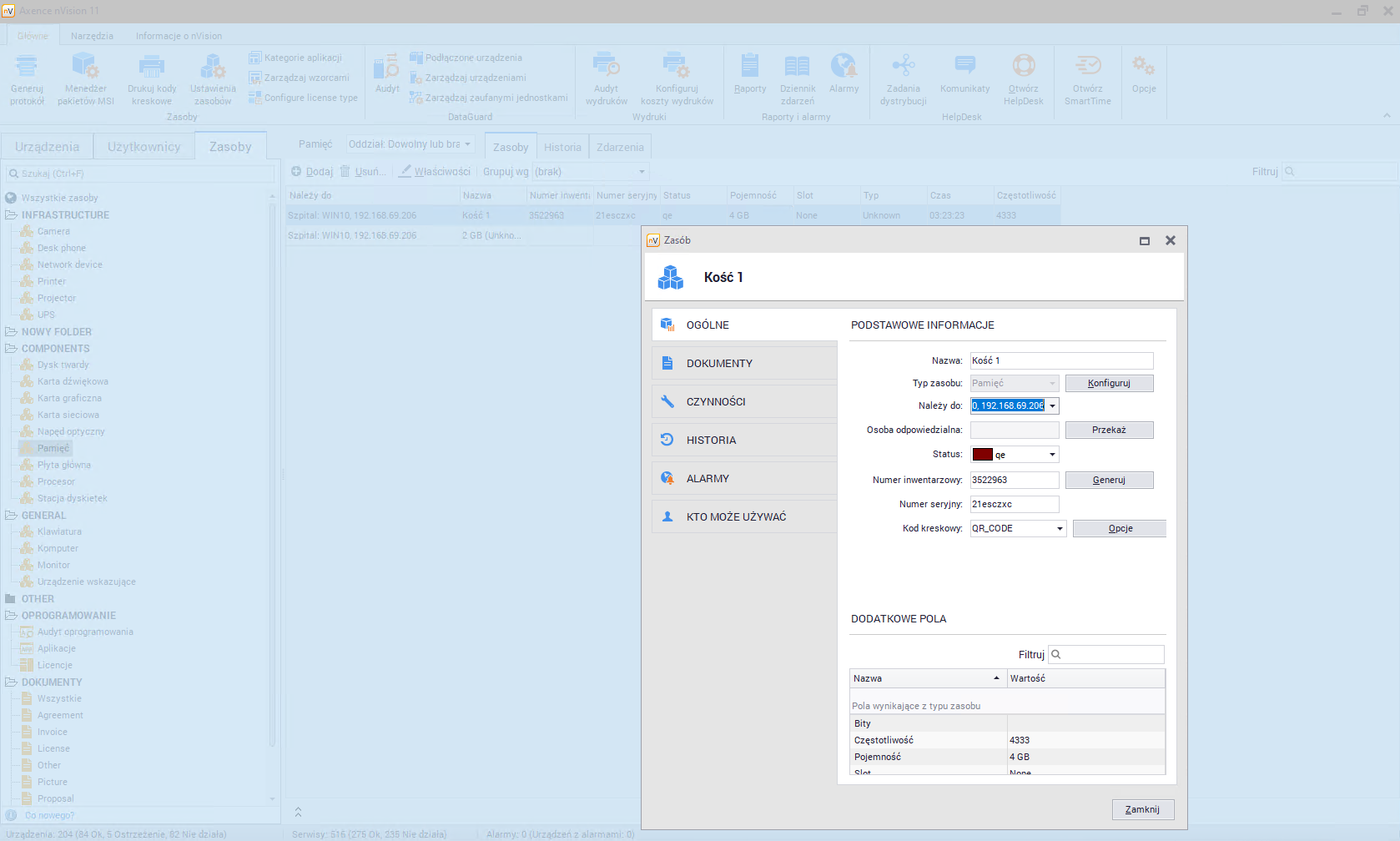 Zasoby w nVision mogą być tworzone automatycznie na podstawie danych z Agenta lub ręcznie. Konfiguracja automatycznego wykrywania i usuwania zasobów została opisana w rozdziale automatyczne wykrywanie zasobów.