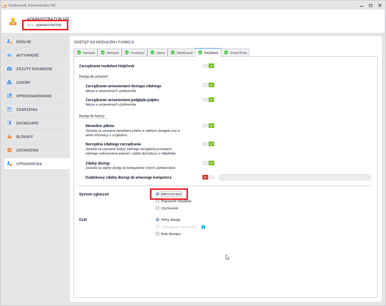 Ustawienia anonimowych zgłoszeń konfigurować może tylko użytkownik z rolą Administrator w Systemie zgłoszeń (HelpDesk).