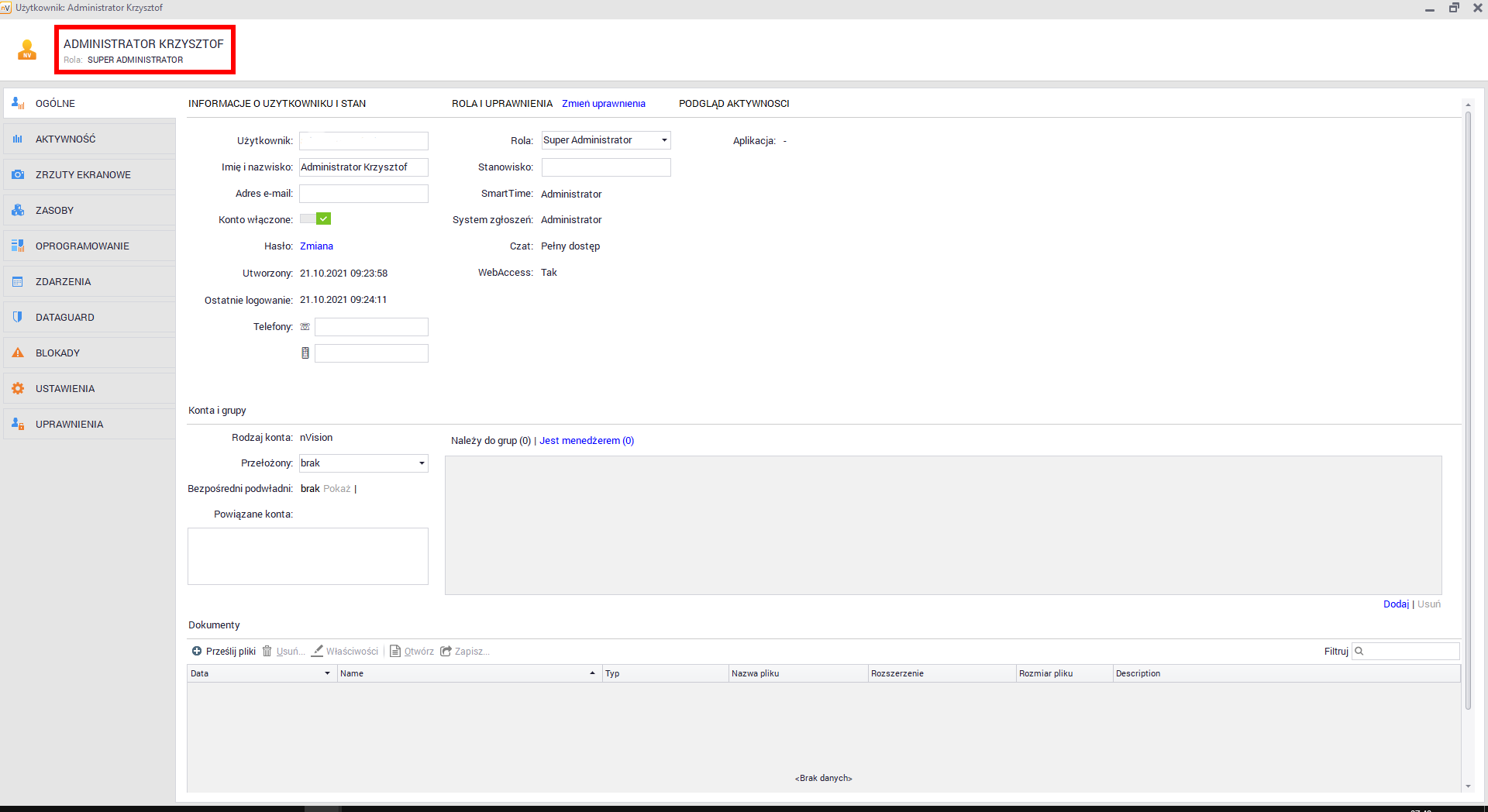 Aby skorzystać z globalnej wyszukiwarki: 1.Kliknij w pole wyszukiwarki oraz wprowadź wyszukiwane słowa kluczowe/nazwy właściwości (wyszukiwanie rozpoczyna się po wprowadzeniu co najmniej 3 znaków w pole wyszukiwarki). 2.Dwukrotnie kliknij w wyświetlany na liście obiekt - zostaniesz przeniesiony do odpowiedniej zakładki np. po kliknięciu w imię i nazwisko użytkownika wyświetli się okno konta danego użytkownika.
