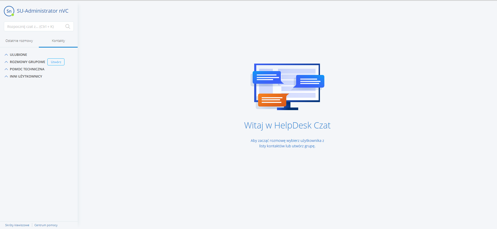 Po kliknięciu w przycisk Czat (zarówno w przeglądarce, jak i w opcjach Agenta) wyświetlane jest okno z trzema grupami użytkowników: