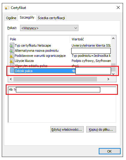 gdzie: PORT = port HelpDesku skonfigurowany w nVision w Narzędzia / Opcje / Zdalny dostęp WWW ( APP_GUID = dowolny unikalny identyfikator GUID aplikacji, wygenerowany np. na stronie: https://www.guidgenerator.com/online-guid-generator.aspx CERT_HASH = odcisk palca certyfikatu (skopiowany bez spacji):