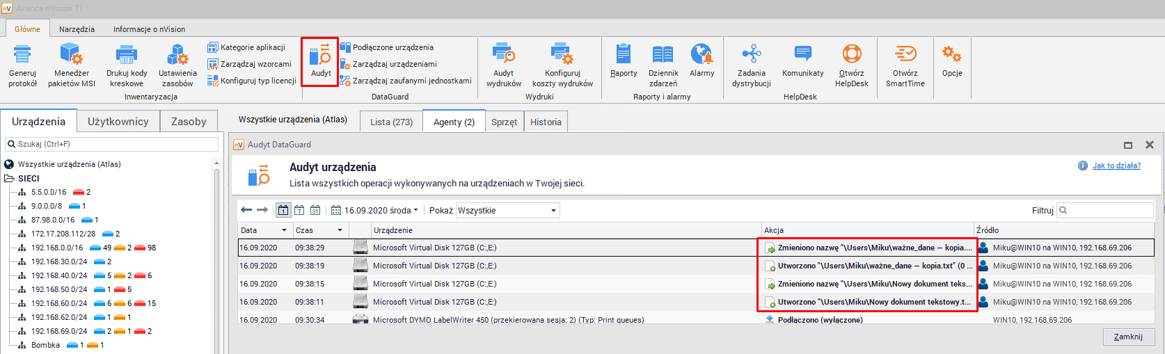 Każdy katalog dodany jako audytowany automatycznie sprawia, że cała jego zawartość jest audytowana (wraz podkatalogami oraz plikami).